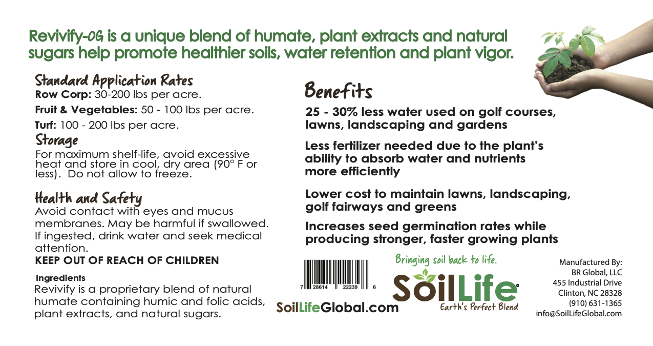 Revivify is a proprietary blend of natural humate containing humic and folic acids, plant extracts, and natural sugars.